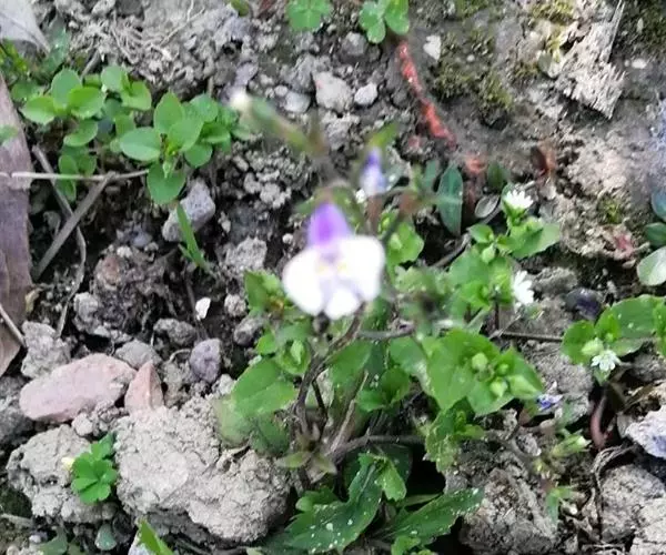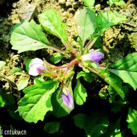 本种在体态上变化幅度很大,茎1-5支或有时更多,直立,上升或倾卧状上升,着地部分节上常能长出不定根,分枝多而披散,少不分枝。基生叶少到多数,有时成莲座状或早落,倒卵状匙形至卵状倒披针形,膜质至薄纸质,长2-6厘米,顶端全缘或有不明显的疏齿,基部楔形,下延成带翅的叶柄,边缘具不规则的粗齿或基部有1-2片浅羽裂;茎生叶对生或互生,少数,与基生叶相似或几乎等大。