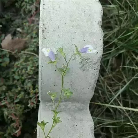 一年生草本,高3-30厘米,无毛或疏生短柔毛。主根伸长,垂直向下或短缩,须根纤细,多数,散生或簇生。本种在体态上变化幅度很大,茎1-5支或有时更多,直立,上升或倾卧状上升,着地部分节上常能长出不定根,分枝多而披散,少不分枝。基生叶少到多数,有时成莲座状或早落,倒卵状匙形至卵状倒披针形,膜质至薄纸质,长2-6厘米,顶端全缘或有不明显的疏齿,基部楔形,下延成带翅的叶柄,边缘具不规则的粗齿或基部有1-2片浅羽裂;茎生叶对生或互生,少数,与基生叶相似或几乎等大。总状花序生于茎、枝顶端,常在近基部即生花,伸长或上部成束状,通常3-20朵,花疏稀;花梗在果期长达10毫米,上部的较短;花萼钟状,花期长约6毫米,果期多少增大,萼片与萼筒近等长,卵形,端急尖,脉不明显;花冠白色、紫色或蓝色,长约10毫米,上唇裂片卵状三角形,下唇中裂片较小,稍突出,倒卵圆形;子房无毛。蒴果球形;种子小而多数,黄色,种皮上有不规则的网纹。花果期4-10月。