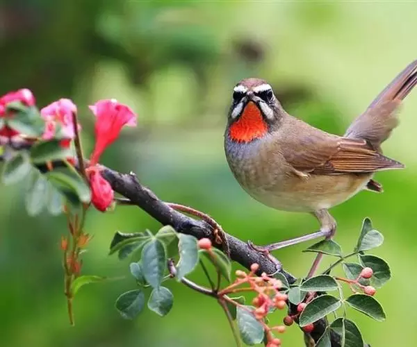 红点颏雄鸟羽色美丽,并善于鸣叫,一般在晨、昏至夜晚鸣叫,鸣声多韵婉转而细柔,美妙动听,十分悦耳。善仿昆虫、蟋蟀,油葫芦,金铃子、金钟子鸣叫,尤其是在发情其鸣声更悦耳。