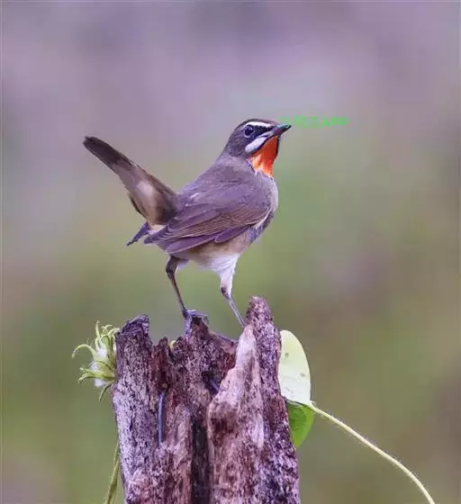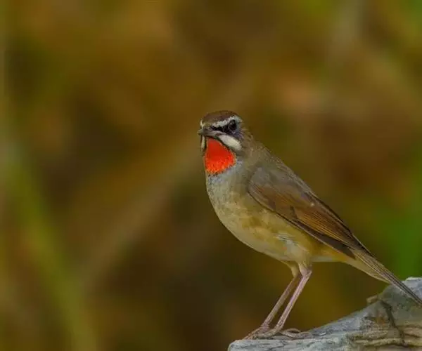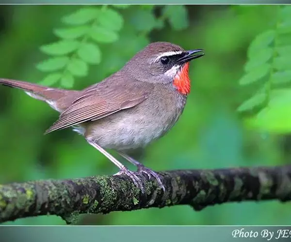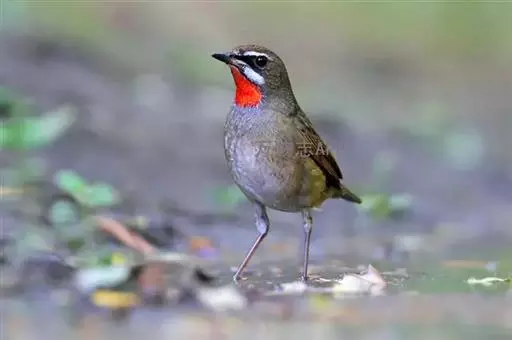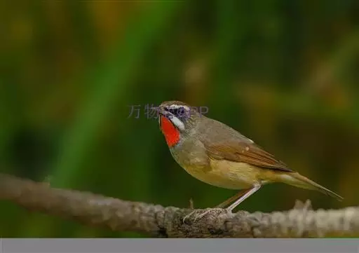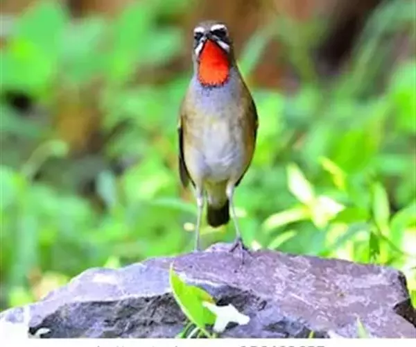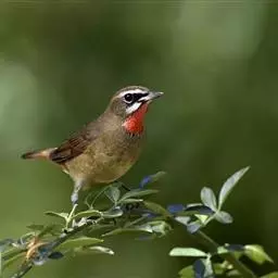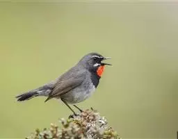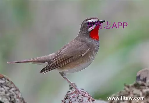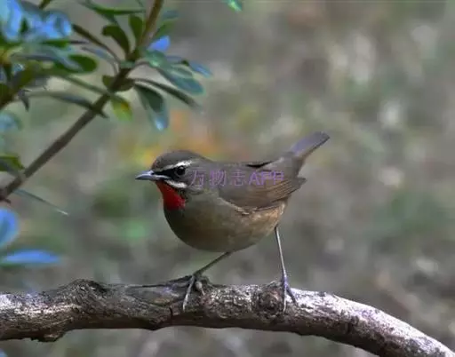 红点颏(学名:Calliope calliope):是鸟纲、鸫科的鸣禽。又名西伯利亚歌鸲。体长14-17厘米,体重16-27克。雄鸟头部、上体主要为橄榄褐色。眉纹白色。颏部、喉部红色,周围有黑色狭纹。胸部灰色,腹部白色。雌鸟颏部、喉部不呈赤红色,而为白色。虹膜褐色。嘴暗褐色。脚角色。