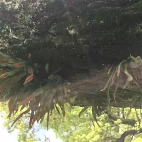 附生雨林或季雨林中生树干上或石上,海拔100-1900米。
