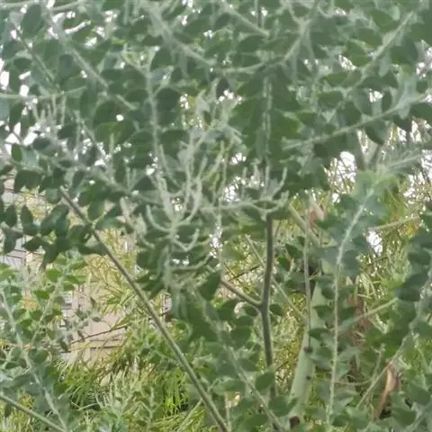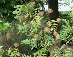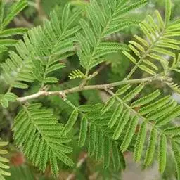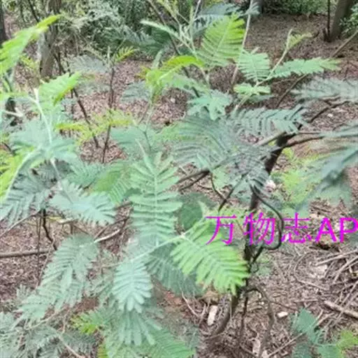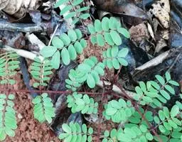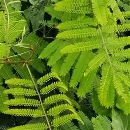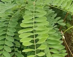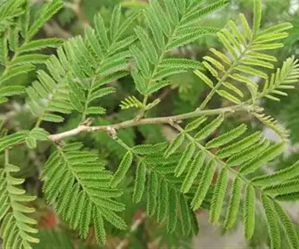 二回羽状复叶长2-7厘米,叶轴糟状,被灰白色柔毛,有腺体;羽片4-8对,长1.5-3.5厘米;小叶通常10-20对,线状长圆形,长2-6毫米,宽1-1.5毫米,无毛。