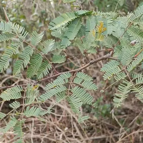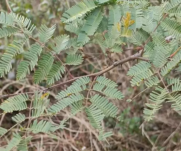灌木或小乔木植物,高2-4米;树皮粗糙,褐色,多分枝,小 金合欢 枝常呈“之”字形弯曲,有小皮孔。托叶针刺状,刺长1-2厘米,生于小枝上的较短。