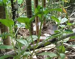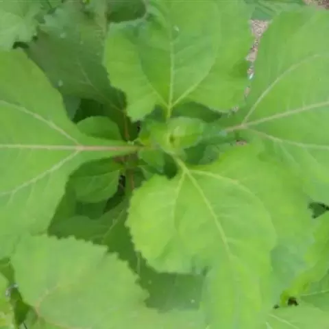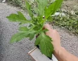 3、毛梗豨莶,本品枝上部疏生平伏短柔毛,叶片较小,边缘锯齿规则。以枝嫩、叶多、色深绿者为佳。