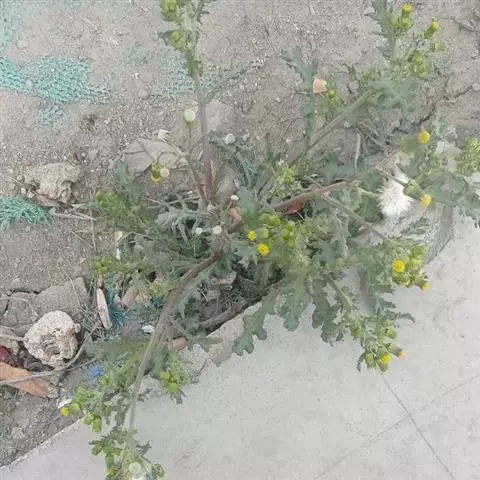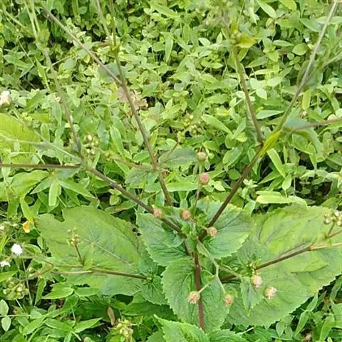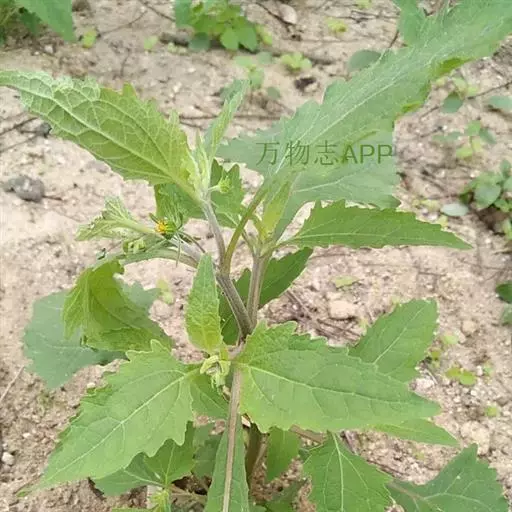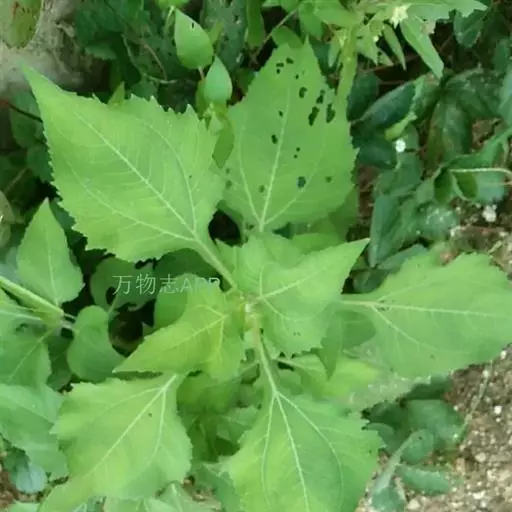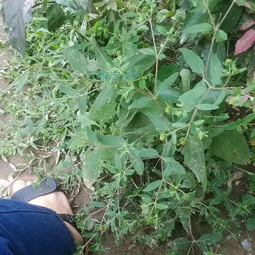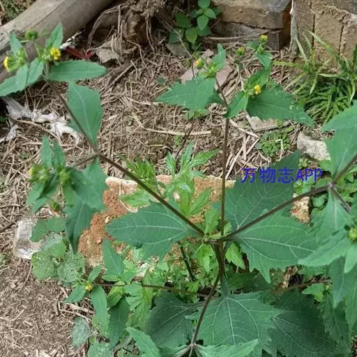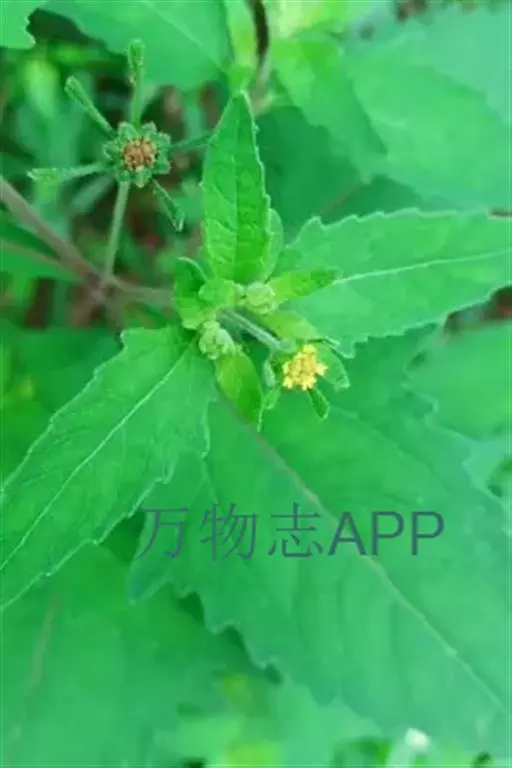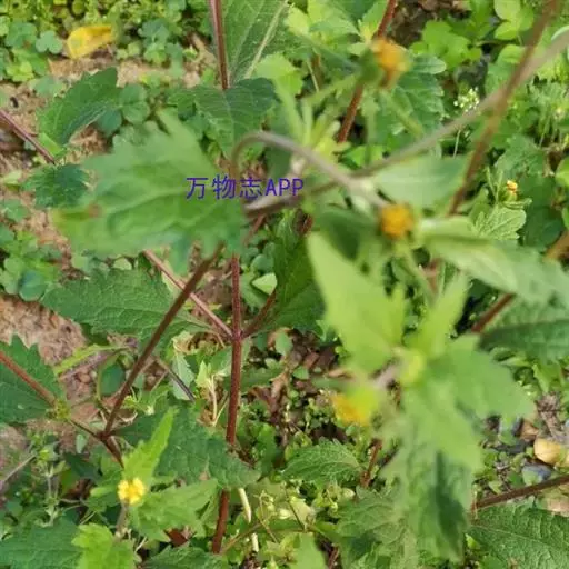 2、腺梗豨莶又名:毛豨莶。一年生草本。茎直立,粗壮,高30-110厘米,上部多分枝,被开展的灰白色长柔毛和糙毛。基部叶卵状披针形,花期枯萎;中部叶卵圆形或卵形,开展,长3.5-12厘米,宽1.8-6厘米,基部宽楔形,下延成具翼而长1-3厘米的柄,先端渐尖,边缘有尖头状规则或不规则的粗齿;上部叶渐小,披针形或卵状披针形;全部叶上面深绿色,下面淡绿色,基出三脉,侧脉和网脉明显,两面被平伏短柔毛,沿脉有长柔毛。头状花序径约18-22毫米,多数生于枝端,排列成松散的圆锥花序;花梗较长,密生紫褐色头状具柄腺毛和长柔毛;总苞宽钟状;总苞片2层,叶质,背面密生紫褐色头状具柄腺毛,外层线状匙形或宽线形,长7-14毫米,内层卵状长圆形,长3.5毫米。舌状花花冠管部长1-1.2毫米,舌片先端2-3齿裂,有时5齿裂;两性管状花长约2.5毫米,冠檐钟状,先端4-5裂。瘦果倒卵圆形,4棱,顶端有灰褐色环状突起。花期5-8月,果期6-10月。