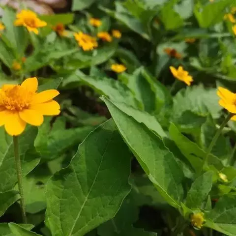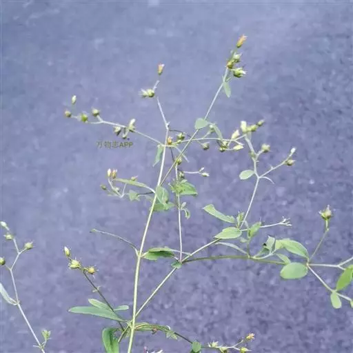 3、毛梗豨莶又名:光豨莶、少毛豨莶。一年生草本。茎直立,较细弱,高30-80厘米,通常上部分枝,被平伏短柔毛,有时上部毛较密。基部叶花期枯萎;中部叶卵圆形、三角状卵圆形或卵状披针形,长2.5-11厘米,宽1.5-7厘米,基部宽楔形或钝圆形,有时下延成具翼的长0.5-6厘米的柄,顶端渐尖,边缘有规则的齿;上部叶渐小,卵状披针形,长1厘米,宽0.5厘米,边缘有疏齿或全缘,有短柄或无柄;全部叶两面被柔毛,基出三脉,叶脉在叶下面稍突起。头状花序径10-18毫米,多数头状花序在枝端排列成疏散的圆锥花序;花梗纤细,疏生平伏短柔毛。总苞钟状;总苞片2层,叶质,背面密被紫褐色头状有柄的腺毛;外层苞片5枚,线状匙形,长6-9毫米,内层苞片倒卵状长圆形,长3毫米。托片倒卵状长圆形,背面疏被头状具柄腺毛。雌花花冠的管部长约0.8毫米,两性花花冠上部钟状,顶端4-5齿裂。瘦果倒卵形,4棱,长约2.5毫米,有灰褐色环状突起。花期4-9月,果期6-11月。