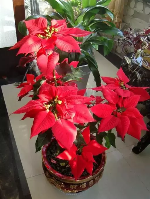 一品红花色鲜艳,花期长,正值圣诞、元旦、春节开花,盆栽布置室内环境可增加喜庆气氛;也适宜布置会议等公共场所。南方暖地可露地栽培,美化庭园,也可作切花。