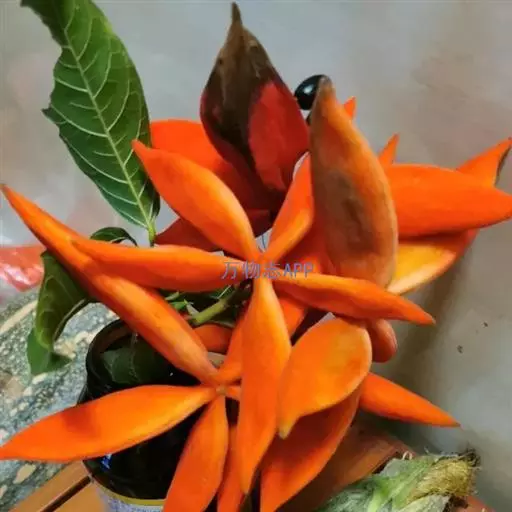 叶淡灰绿色、具白色斑纹,苞片鲜红色。