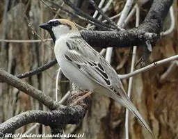 山麻雀:小型鸟类,体长13-15厘米。雄鸟上体栗红色,背中央具黑色纵纹,头棕色或淡灰白色,颏、喉黑色,…