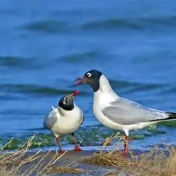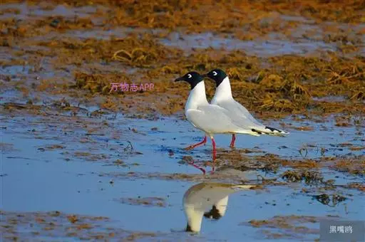 黑嘴鸥 中型水鸟,体长31~39厘米。嘴黑色,脚红色。夏羽头黑色,眼上和眼 下具白色星月形斑,在黑…
