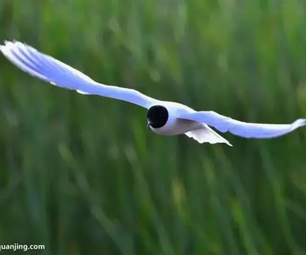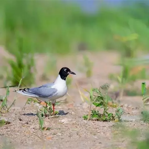 鸥嘴噪鸥,中型水禽,体长31~39厘米。夏羽额、头顶、枕和头的两侧从眼和耳羽以上黑色。背、肩、腰和…