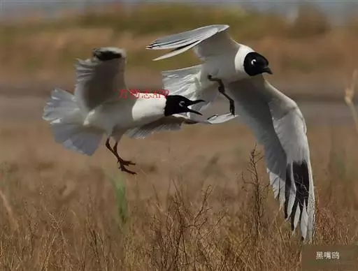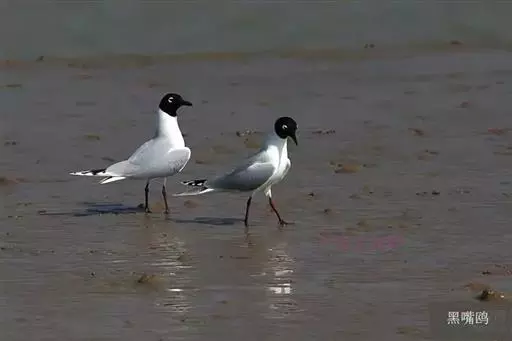 黑嘴鸥 (学名:Larus saundersi)中型水鸟,体长31~39厘米。嘴黑色,脚红色。夏羽头黑色,眼上和眼 下具白色星月形斑,在黑色的头上极为醒目。颈、腰、尾上覆羽、尾和下体白色。初级飞羽末端具黑色斑点。翼下仅部分初级飞羽黑色,与整个翼下表面和下体白色形成鲜明对比。飞翔时甚为醒目。冬羽和夏羽相似,但头白色,头顶有淡褐色斑,耳区有黑色斑点。
