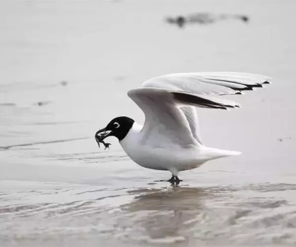 据说,晚唐年间,著名诗人李商隐在他的花园中饲养了5种珍禽,其中之一是一种头部和喙均为黑色,而在眼后生有一道显著白色半圆的黑嘴鸥。