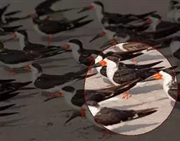 剪嘴鸥:是鸟纲、剪嘴鸥科的中型水鸟,体长40-43厘米。嘴粗,长而侧扁,基部较宽。下嘴较上嘴显著为长。…
