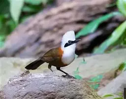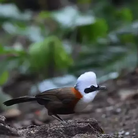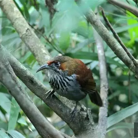 黑顶噪鹛:中型鸟类,体长24-26厘米。前额、脸、颏、喉黑色,头顶黑褐沾棕或深棕橄榄褐色,…
