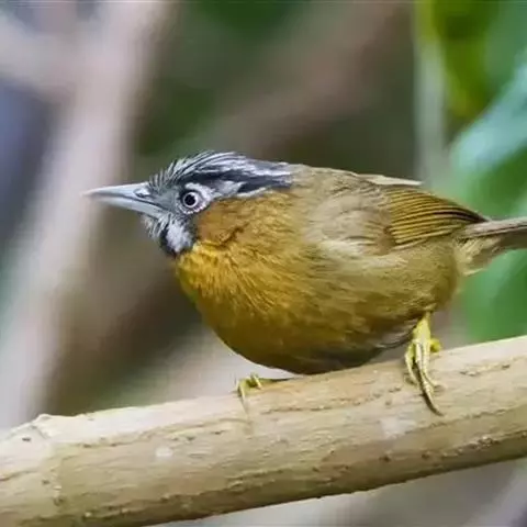 黄喉雀鹛是雀眉科、拟希鹛属小型鸟类,体长11-12厘米。头顶浅黄色具黑色鳞状斑,…