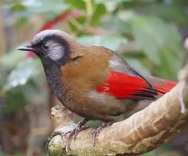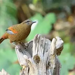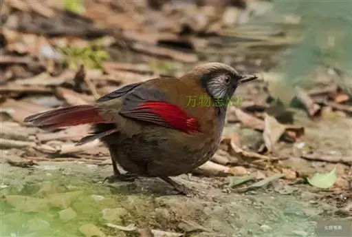 丽色噪鹛(学名:Garrulax formosus formosus)是红翅噪鹛的指名亚种。中型鸟类,体长23-28厘米。头顶灰橄榄褐色具粗著的黑色纵纹,头侧、颏、喉黑色,耳羽灰白色具黑色纵纹。背和胸、腹棕褐色,两翅具一大的鲜红色斑,尾亦为鲜红色。特征极明显,野外不难识别。 相似种赤尾噪鹛头顶至后颈红棕色,耳羽灰色无黑色纵纹,胸、腹暗灰色。栖息于茂密的常绿林,次生林及竹林的地面或近地面处。