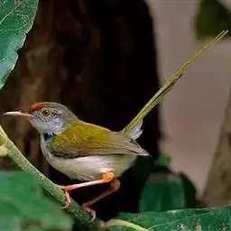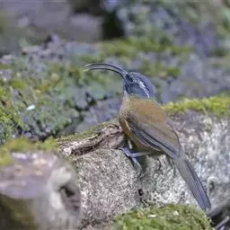 剑嘴鹛:中型鸟类,体长21-22厘米。嘴特别细长而向下弯曲,头顶和头侧烟灰色具长而窄的白色眉纹,…