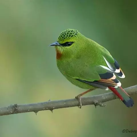 白腹凤鹛是绿鹃科、绿凤鹛属的小型鸟类,体长10-12厘米。上体从头到尾黄绿色,有短的羽冠,…