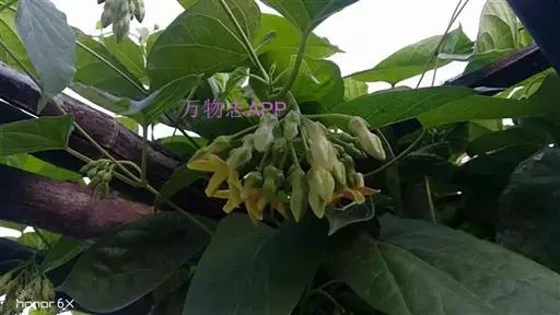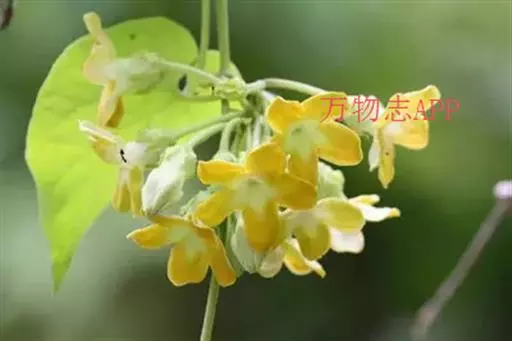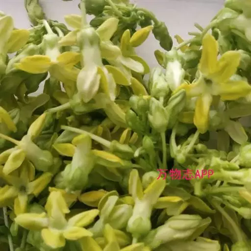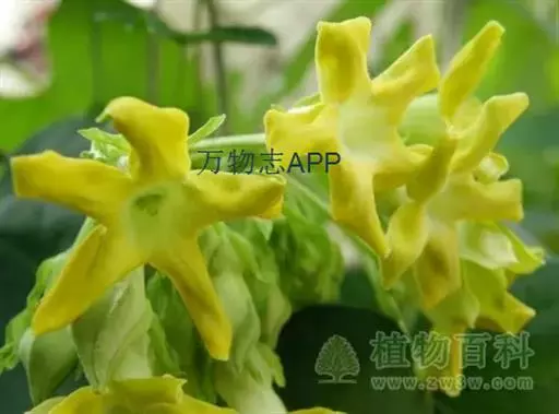 夜来香(学名:Telosma cordata (Burm. f.) Merr.): 柔弱藤状灌木;小枝被柔毛,黄绿色,老枝灰褐色,渐无毛,略具有皮孔。叶膜质,卵状长圆形至宽卵形,叶脉上被微毛。伞形状聚伞花序腋生,着花多达30朵;花芳香,夜间更盛;花冠黄绿色,高脚碟状,花冠筒圆筒形,喉部被长柔毛,裂片长圆形,具缘毛,干时不折皱,向右覆盖;副花冠5片,膜质,着生于合蕊冠上,花柱短柱状,柱头头状,基部五棱。蓇葖披针形,外果皮厚,无毛;种子宽卵形,顶端具白色绢质种毛。花期5-8月,极少结果。