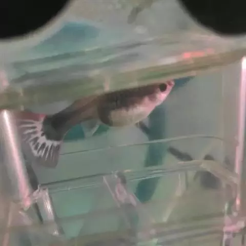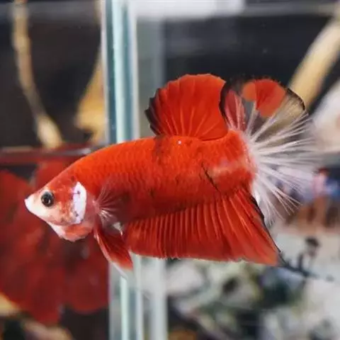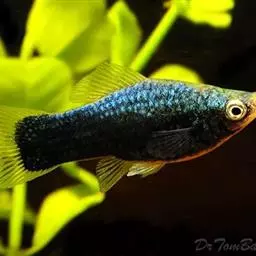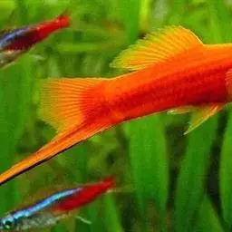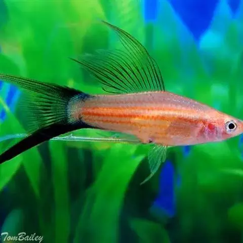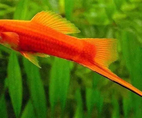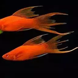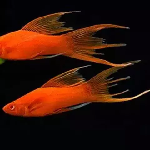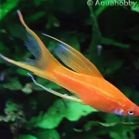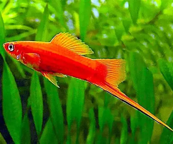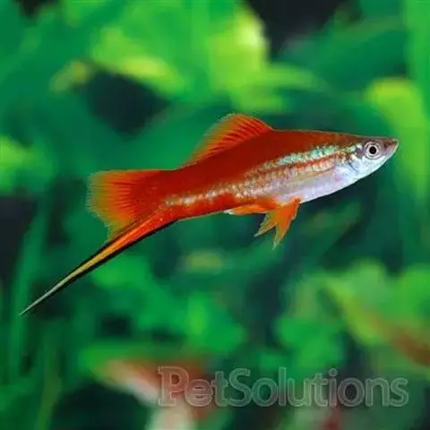 公的红箭鱼发育成熟后鱼尾会长有剑,母鱼的鱼尾则是扇形的