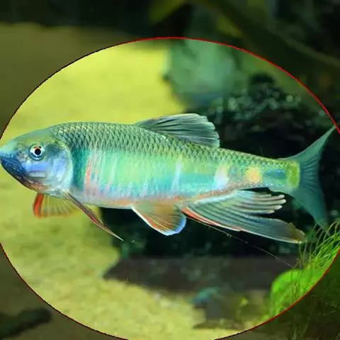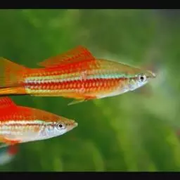 小型鱼,成年个体全长7~10cm,体纺锤形、头尖尾长。红剑鱼遍体通红,是水草缸中的调色者,俗话说的“万绿丛中一点红”,正是它的写照。另外,雄性携长剑、雌性着圆裙(圆形尾),性别特征分明,也是其它鱼类少见的。