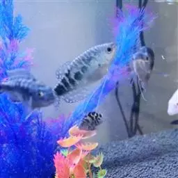 如果不想常换水最好喂活鱼虫,一天最好喂一次