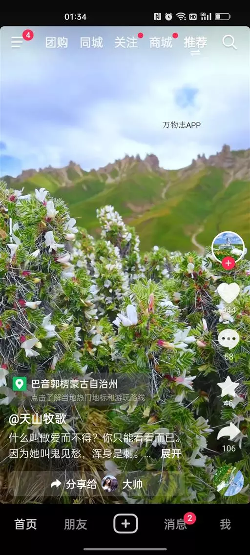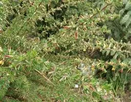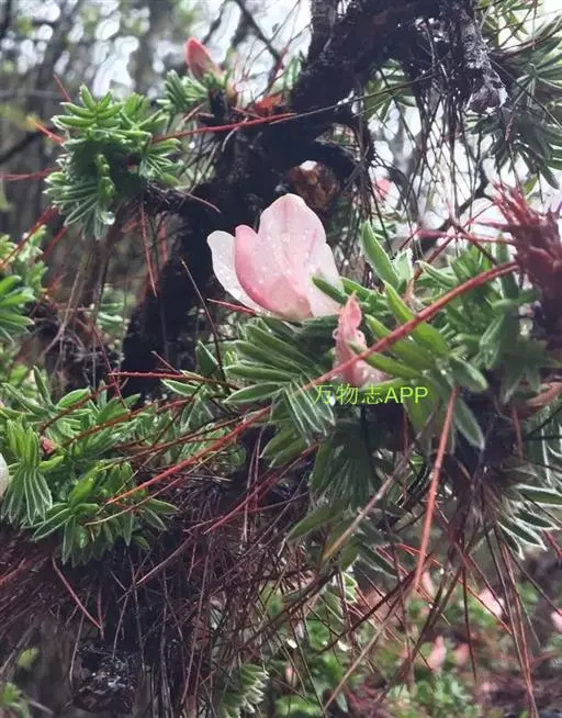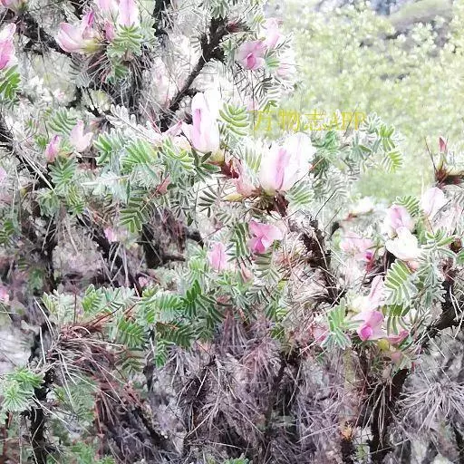 鬼箭锦鸡儿又名:藏锦鸡儿。多刺矮灌木,高l-2m。基部分枝,茎多刺,树皮深灰色至黑色。偶数羽状复叶,小叶4-6对;叶轴宿存并硬化成刺,长5-7cm;叶密集于枝的上部,小叶长椭圆形至线状长椭圆形,长7-24mm,宽1.5-7mm,先端圆或急尖,有针尖,两面疏生柔毛,网脉不明显;托叶与叶柄基部贴生,不硬化成刺。花单生,长2.5-3.5cm,花梗极短,基部有关节;花萼筒状,长l4-17mm,密生长柔毛,基部偏斜,萼齿5,披针形;长为萼筒的1/2;花冠蝶形,淡红色或近白色;子房长椭圆形,密生长柔毛。荚果长椭圆形,长约3cm,宽约7mm,密生丝状长柔毛。花期5-7月,果期7-8月。