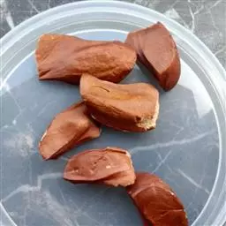 潮汕菜脯 一周后取出晾晒,搓去水分,再曝晒,直至挤不出水为止。然后将竹苫里的盐水过滤煮开,倒入萝卜干浸泡,趁热再揉擦一次,又挤去盐水再晒干,等到变为金黄色后,就将萝卜干装入干净的瓮内压实,用黄泥封口,半年之后取出。