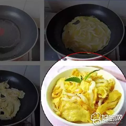 3、与鸡蛋一并煎至成饼状,即潮汕名菜“菜脯蛋”
