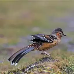 大噪鹛:中型鸟类,体长32-36厘米。额至头顶黑褐色,背栗褐色满杂以白色斑点,…