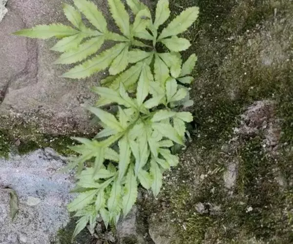 能育羽片顶端一至二回分叉,裂片长2-3厘米,开展。分布于中国四川(重庆)。生山坡岩石旁,海拔400米。