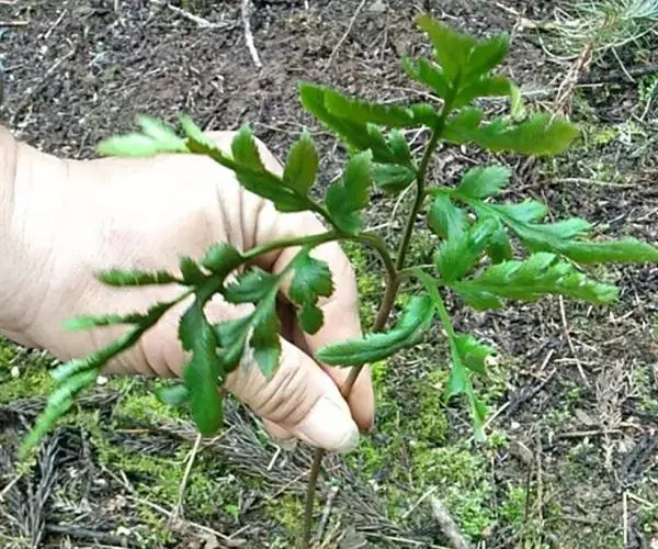 叶片分裂度较简单,通常为一回羽状,或基部多少为二回羽状,羽片2-4对,基部一对羽片单一或2-3叉,间或为羽状,不育叶的羽片或小羽片边缘有细锯齿,先端圆钝、急尖或渐尖,中部的侧生羽片狭披针形,长4-6厘米,宽约1厘米。分布于中国台湾(台北)、广东(珠江口沿海岛屿)、海南、广西(临桂、桂平、藤县、生林下阴处。模式标本采自海南。在广西藤县,用其根状茎治痢疾。
