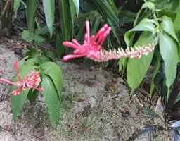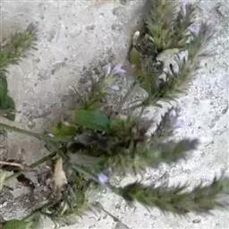 灌木状草本或直立亚灌木,高45厘米或过之。茎纤细,4棱,有极狭的翅,近光滑或被极疏的微毛。叶矩圆状卵形或卵形,连柄长8-10厘米,宽2-2.5厘米,顶端长渐尖,钝,基部渐狭,下延至柄,具0.5-2厘米的柄,边缘具圆齿或浅波状,草质,上面被疏毛,暗棕色,背面灰白色,主脉上被黄褐色柔毛,中肋和侧脉微隆起,侧脉每边4条,近边缘网结。穗状花序顶生或腋生,无梗,单个或3-5个集合,矩圆状卵形。花密集,偏向一侧,苞片披针形,外面被刚毛,长5-6毫米,覆瓦状排列。花萼长6毫米,不等5深裂,外面有髯毛,裂片披针形,长渐尖,有长芒,具1中肋,有黄色边,下方的最宽,两侧最狭,上侧最长。花冠长8-9毫米,冠管钟形,外面被极短反折微柔毛,冠管长3.5毫米,顶端稍收缩,喉里面基部有反折的髯毛,冠檐裂片4,长圆形,顶端圆,下方裂片最宽,顶端短而钝,2齿或全缘。子房卵形被刚毛,花柱极少刚毛,柱头矩圆状头形。花盘环形,稍5裂。