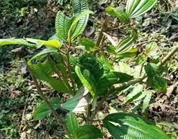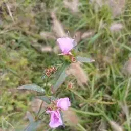 小灌木,高约70cm。茎圆柱形,多分枝,被微柔毛及黄色小腺点,叶对生,叶柄长4-10cm,被微柔毛及疏小腺点;叶片纸质,卵状披针形至卵形,先端短渐尖,基部钝至圆形,有时略偏斜,长3.5cm,宽1.3-2.3cm,叶两面均密被黄色小腺点;近全缘或具极细的小齿;基出脉3-5。花两性,4数;由聚伞花序组成小圆锥花序,顶生,密被微柔毛及疏小腺点;苞片不明显;花梗与花萼均被黄色小腺点;花萼漏斗形,具四棱,裂片短三角形,长不到1mm;花瓣粉红色至紫红色,先端急尖,偏斜;花丝多少被微柔毛,花药弯曲;子房半下位,先端具4小突起。蒴果椭圆形,为宿存萼所包。花期7月,果期10月。
