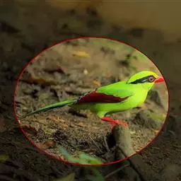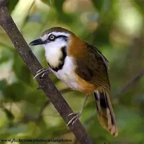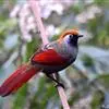 赤尾噪鹛中型鸟类,体长24~28厘米。头顶至后颈红棕色,两翅和尾鲜红色,眼先、眉纹、颊、颏和喉黑色,…