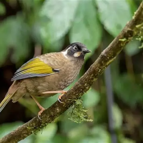 灰翅噪鹛中型鸟类,体长21~25厘米。额黑色,头顶黑或灰色,眼先、脸白色。上体橄榄褐至棕褐色,…