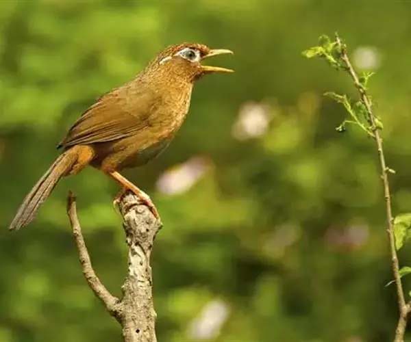 画眉鸟(学名:Garrulax canorus):是鸟纲、画眉科的中型鸟类。体长约23厘米。上体橄榄色,头顶至上背棕褐色具黑色纵纹,眼圈白色,并沿上缘形成一窄纹向后延伸至枕侧,形成清晰的眉纹,极为醒目。下体棕黄色,喉至上胸杂有黑色纵纹,腹中部灰色。虹膜橙黄色或黄色,上嘴橘色,下嘴橄榄黄色,跗蹠和趾黄褐色或浅角色。