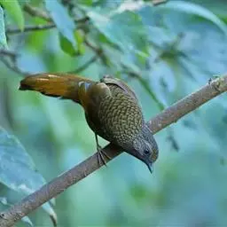 斑背噪鹛是噪眉科、噪鹛属中型鸟类,体长24-28厘米。额至头顶多为栗褐色,眼先、眼周和眼后纹均白色,…