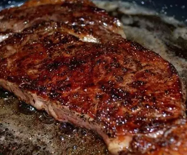 以煎为例,牛排第一次下锅煎炸一定要大火高温,这时牛肉表面一层肉脱水变硬,发生美拉德反应,颜色变为深褐色,并且散发出煎炸的香味,在牛肉变焦之前翻一面,将另一面也煎成深褐色。这一阶段是为了制作出牛排的风味。