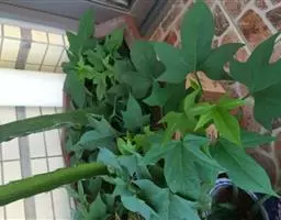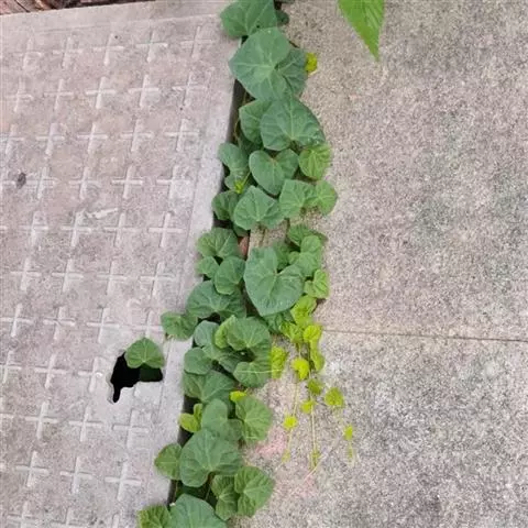 叶宽卵形,长近于宽,长约6-15厘米,基部深心形,全缘或大多3裂,裂片渐尖,中裂片下部收缩,侧裂片具粗齿或再分裂,叶面深绿色,背面苍白,无毛;叶柄长3-10厘米。