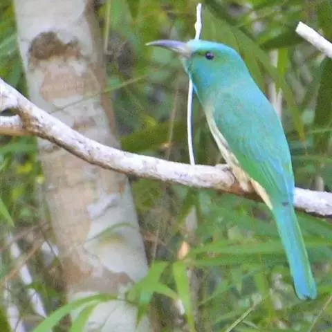棕脸鹟莺:体长10厘米,是一种色彩亮丽而有特色的莺鸟。头栗色,具黑色侧冠纹。上体绿,腰黄色。下体白,…