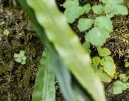 钱线蕨分布于世界热带地区,品种有数十种。株高约15-60公分,叶自地下根茎抽出,叶柄墨黑明亮,如铁线般坚韧,因此得名铁线蕨。2-4回羽状复叶,薄草质,小叶呈扇形或鱼鳍形,叶色翠绿,叶形轻柔,婀娜多姿,极为脱俗,有“少女的发丝”之美誉,很受喜爱。性耐阴,适合盆栽或假山池边点缀,尤其室内盆栽倍感优雅清爽。