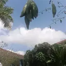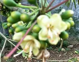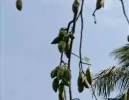 榴梿,是一种锦葵目、木棉科巨型的热带常绿乔木,叶片长圆,顶端较尖,聚伞花序,花色淡黄,果实足球大小…