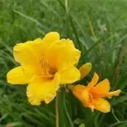 金娃娃萱草:是萱草的人工栽培的园艺品种。地下具根状茎和肉质肥大的纺锤状块根。叶基生,条形,排成两列,…