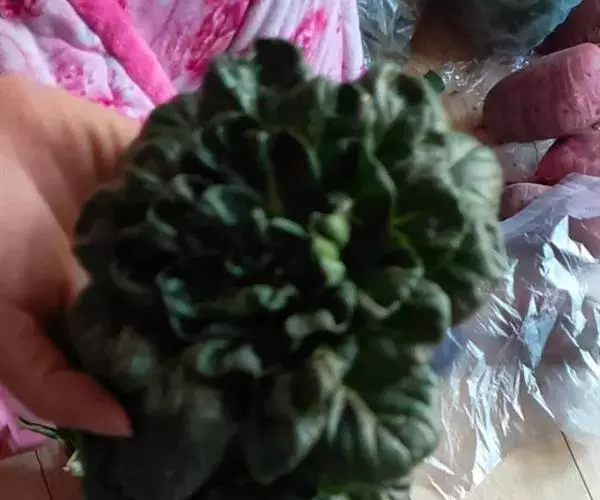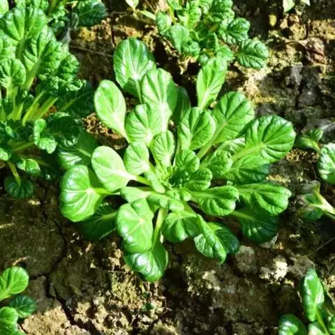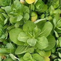 半塌地型植株不完全塌地,代表品种有南京瓢菜,叶片半直立,叶圆形、墨绿色,叶有皱褶,叶脉细稀,叶全缘,叶柄扁平微凹,白色,叶尖外翻,有菊花心之称。