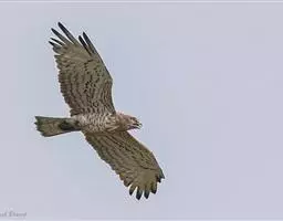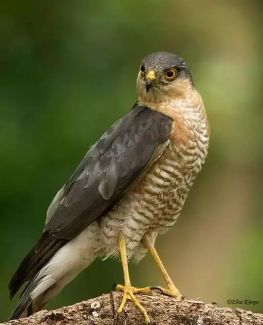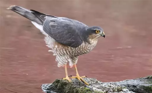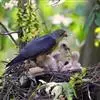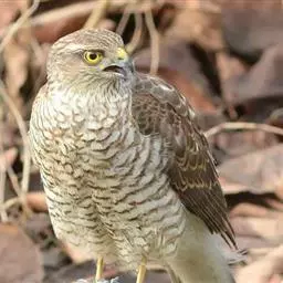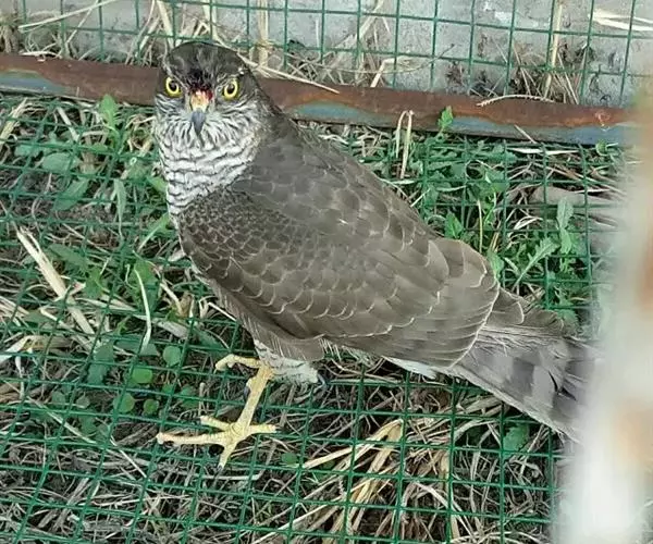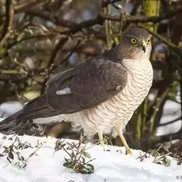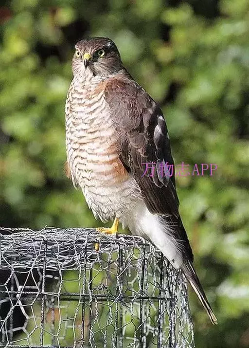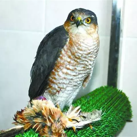 雀鹰(学名:Accipiter nisus)属小型猛禽,体长30-41厘米。雌较雄略大,翅阔而圆,尾较长。雄鸟上体暗灰色,雌鸟灰褐色,头后杂有少许白色。下体白色或淡灰白色,雄鸟具细密的红褐色横斑,雌鸟具褐色横斑。尾具4-5道黑褐色横斑,飞翔时翼后缘略为突出,翼下飞羽具数道黑褐色横带,通常快速鼓动两翅飞一阵后接着又滑翔一会。栖息于针叶林、混交林、阔叶林等山地森林和林缘地带。日出性。常单独生活。或飞翔于空中,或栖于树上和电柱上。以雀形目小鸟、昆虫和鼠类为食,也捕食鸽形目鸟类和榛鸡等小的鸡形目鸟类,有时亦捕食野兔、蛇、昆虫幼虫。分布于欧亚大陆,往南到非洲西北部,往东到伊朗、印度和中国及日本。越冬在地中海、阿拉伯、印度、缅甸、泰国及东南亚国家。