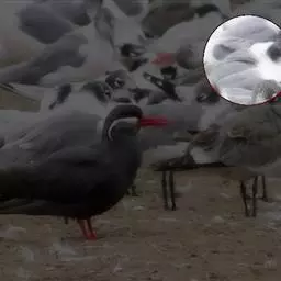 虹膜淡黄白色;嘴暗珊瑚红色,先端淡黄;脚淡橙黄色。