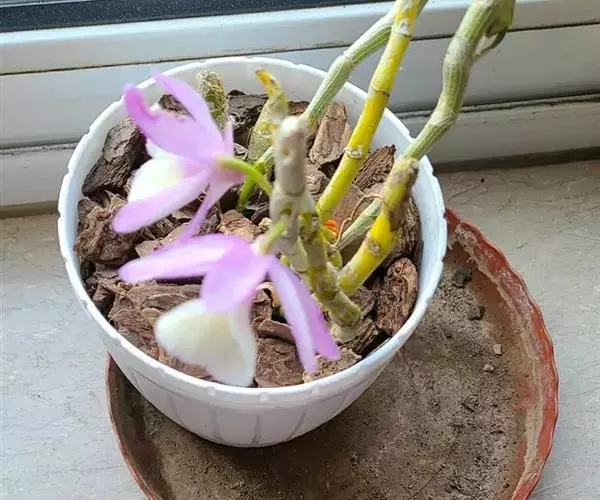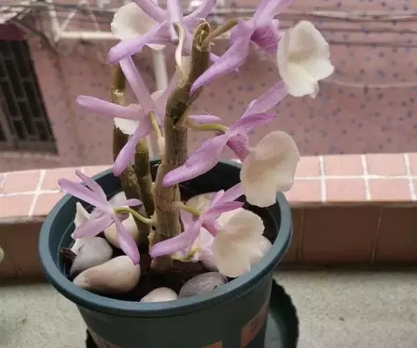 通常选用四壁多孔的塑料或陶瓷花盆,用碳根、泥炭藓、树皮块、木炭块等作盆栽材料。根据兰苗的大小,选择不同规格的花盆,但不宜用大盆栽小苗口上述栽好材料在使用前必需在清水中浸泡1天以上备用。盆底要多垫大瓦片或碎砖块,深度至盆底约1/3处,然后将兰苗放于盆中央,并在一旁插一细竹竿以固定兰苗,再填入其他栽培材料,注意根与根之间用材料隔开。