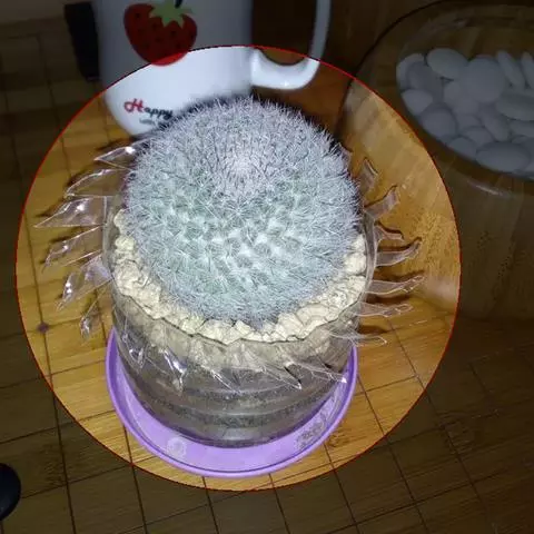 年幼植株的颜色为淡草绿色中透着苍白,老年植株更加趋向灰绿色。人工栽培条件下,花笼幼嫩的部分,呈现出紫红色,这种情况在嫁接株上表现更加明显。花笼球体的棱脊和顶部长着早落而卷曲的土黄色小刺1~3根以及微小的绒毛,这些绒毛沿着棱脊的中心线生长,而副棱脊上则不长绒毛。